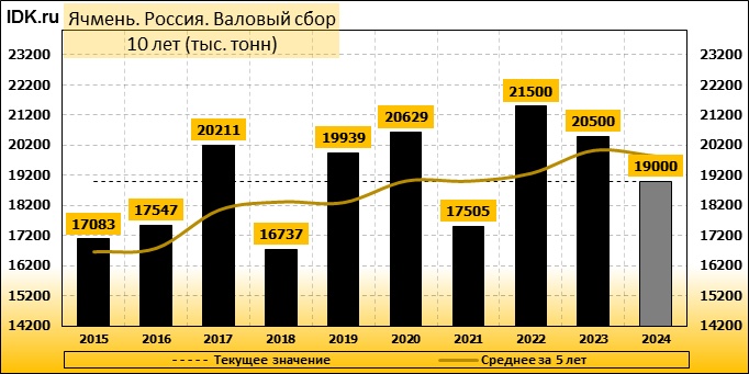 Валовый сбор: оценка пересмотрена в сторону понижения до 19000 тысяч тонн. Показатель упал на -2.56 процента.
