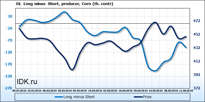Открытый интерес производителей вырос на 30 тыс. контрактов. Объем контрактов, направленных на хеджирование, составляет 909 344 штуки. Деньги производителей в течение прошлой недели приходили на рынок поддерживая тенденцию.