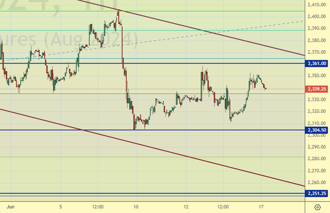 Продажа: нет. Кто в позиции от 2358, держите стоп на 2353. Цель: 2100.