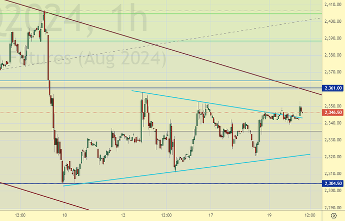 Продажа: нет. Кто в позиции от 2358, держите стоп на 2353. Цель: 2100.