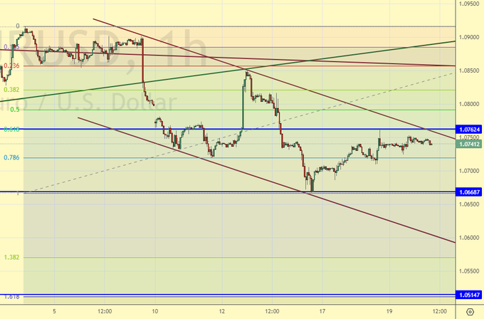 Продажа: нет. Кто в позиции от 1.0850, держите стоп на 1.0830. Цель: 1.0520.