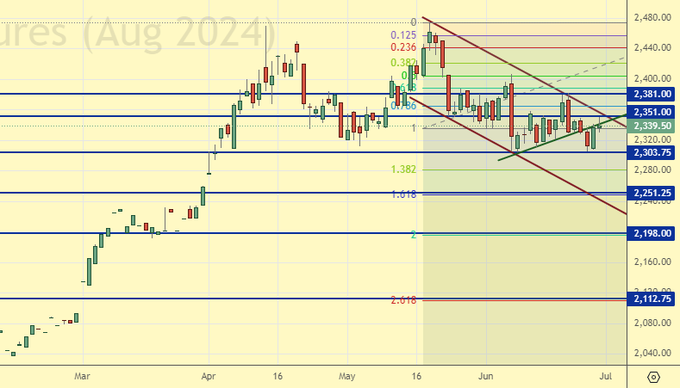Продажа: нет. Кто в позиции от 2325, держите стоп на 2380. Цель: 2120.