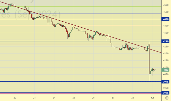 Идем мы к 390.0. От 400.0 отскок вверх считаем промежуточным. А вот от 390.0 можем отскочить вверх куда-то к 450.0. Данные по валовому сбору в сезоне 24/25 от USDA станут для всех наиболее важными. А это произойдет только через 10 дней.