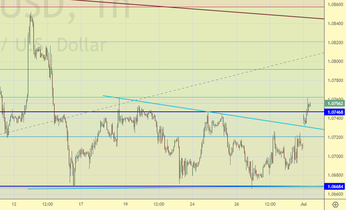 Мы не пошли из консолидации вниз. Это неприятно для поклонников доллара, но скорее, мы имеем дело с летним безразличием, чем с какими-то коварными замыслами. Евро будет очень тяжело подниматься вверх, так как набор экономических проблем будет в перспективе только расти. Да, и дешевого топлива не будет, хоть из США, хоть из России.