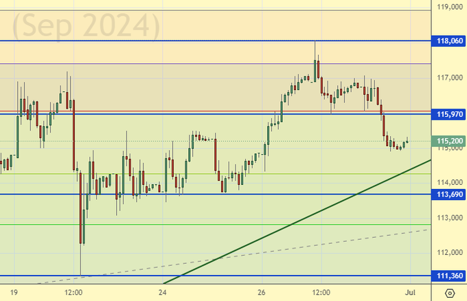 Продажа: при касании 115800. Стоп: 116900. Цель: 100000.