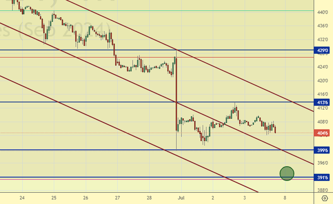 Так как вчера торгов не было, то сегодня, можно продублировать вчерашний комментарий: «Всё выглядит так, что сегодня мы пройдем к 393.0. Там надо будет купить».
