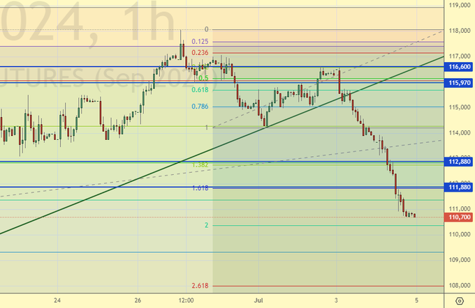 Как упоительны в Росси вечера… Да-с, мы падаем-с. Нас ждет 108000, далее притормозим, но потом скорее всего продолжим идти вниз. Рынок будет убит высокой ставкой ЦБ, причем, теперь, после данных по инфляции, не факт, что мы не получим сразу, например, 20%, если не 25.