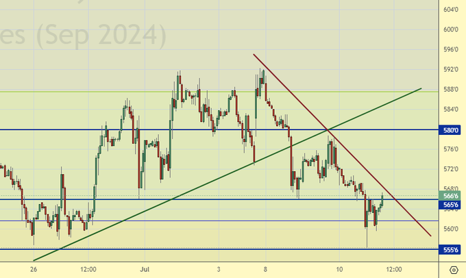 Продажа: нет. Кто в позиции от 570.4, перенесите стоп на 569.0. Цель: 521.0.