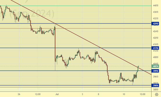 Покупка: нет. Кто в позиции от 393.0, перенесите стоп на 394.0. Цель: 440.0.