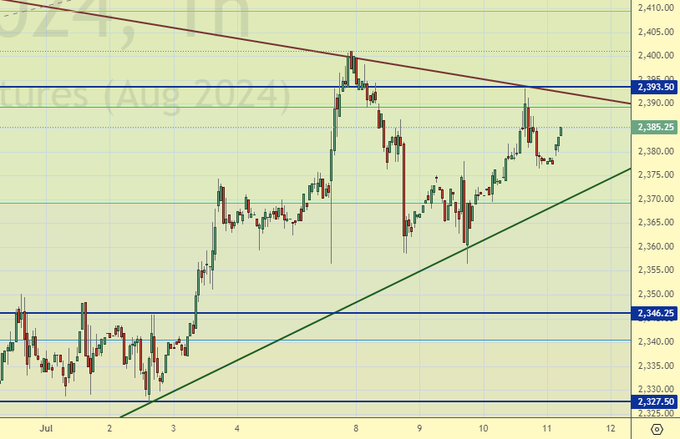 Продажа: нет. Кто в позиции от 2384, перенесите стоп на 2396. Цель: 2100.