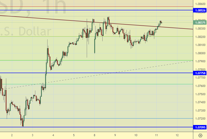 Продажа: нет. Кто в позиции от 1.0828, держите стоп на 1.0870. Цель: 1.0250.