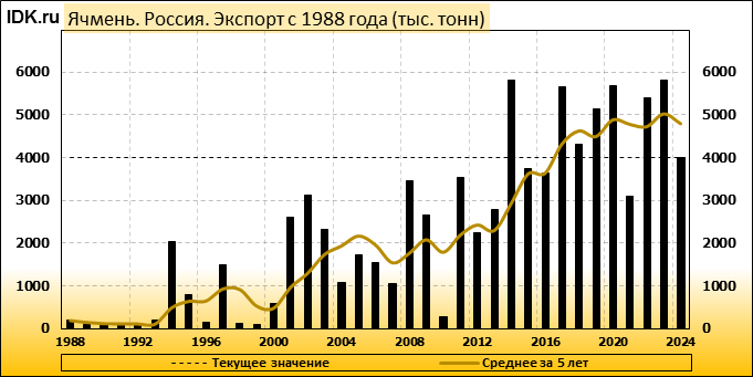 Россия по итогам завершившегося сельхозсезона (1 июля 2023 года — 30 июня 2024 года), по предварительным данным, заняла первое место в мире по экспорту пшеницы и ячменя.