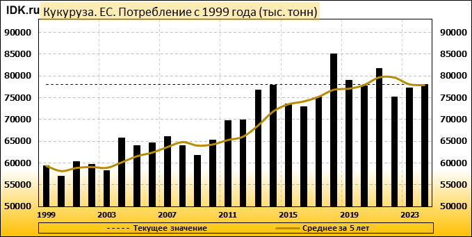 Потребление: показатель пересмотрен в сторону понижения до 78100 тысяч тонн. Значение упало на -0.76 процента.
