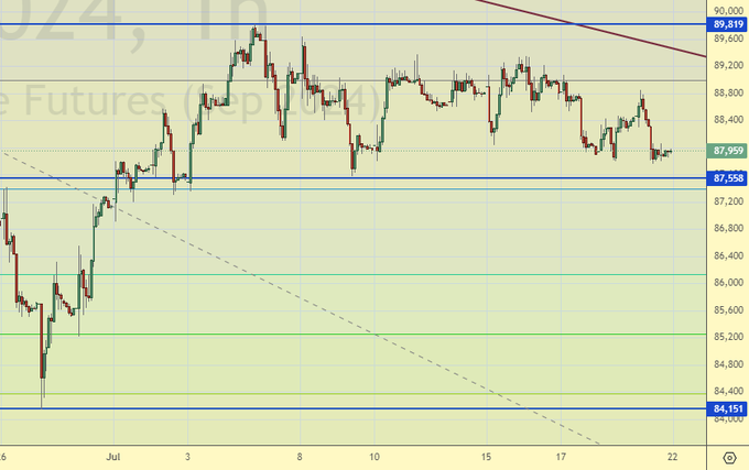 Продажа: нет. Кто в позиции от 89000, держите стоп на 89200. Цель: 75000.