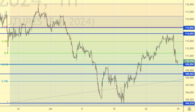 Ушли вниз от 114000. Хорошо стоять в шорте от данного уровня. Даже если мы восстановимся, а на этот счет есть сомнения, то расти нам будет крайне тяжело 115000 – это вот прям последнее, что наверху у нас есть. Если выше, то чудеса будут, однако.