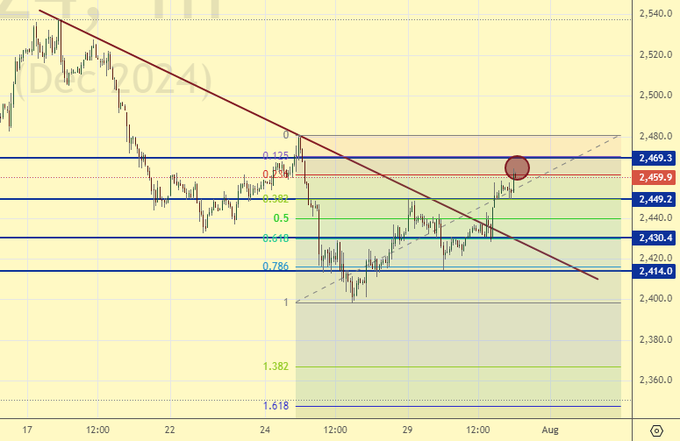Продажа: сейчас (2459) и при подходе к 2480. Стоп: 2488. Цель: 2120! Считайте риски.