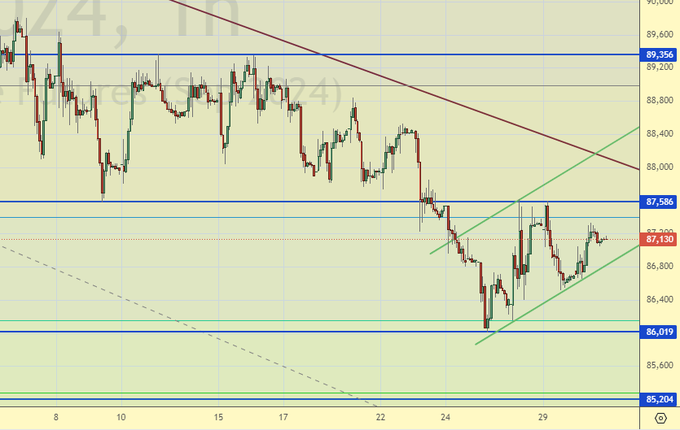 Ничего нового. Мы продолжим воздерживаться по данному рынку от каких-либо действий. Неопределенность по паре высока. Текущий откат – это пока брожение в диапазоне, ничего более.