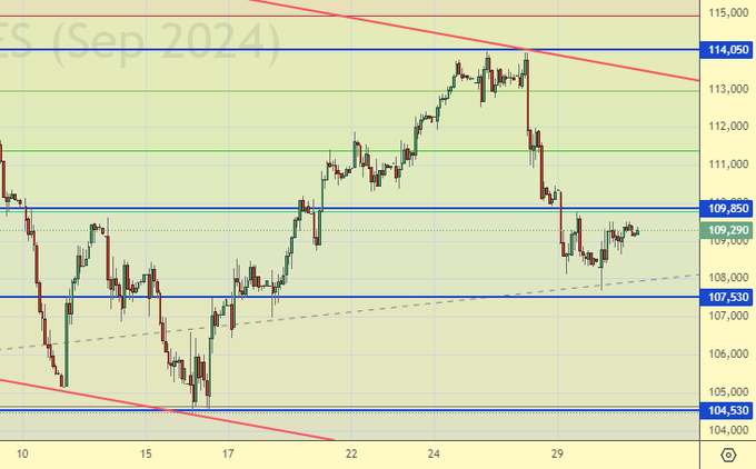 Как и на других инструментах видим паузу перед сегодняшним заседанием ФРС. Подошли к сильной области поддержки на 107500. В случае прохода ниже откроется 104500, далее 96500.
