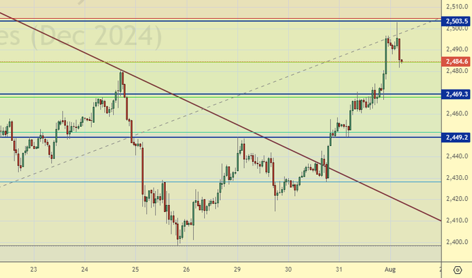 Продажа: сейчас (2484) и при подходе к 2500. Стоп: 2515. Цель: 2120! Считайте риски.