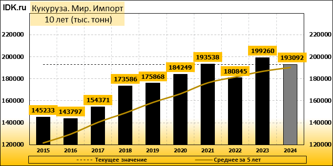 Импорт: составит 193092 тысячи тонн. Значение по прошествии месяца упало на -0.59 процента.
