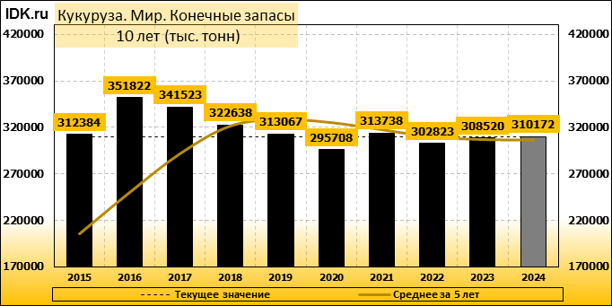 Конечные запасы: составят 310172 тысячи тонн. Оценка с последнего отчета снизилась на -0.47 процента.