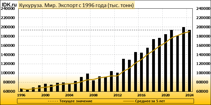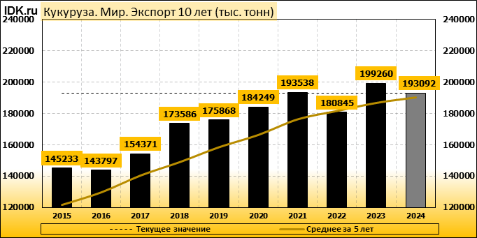 Экспорт: оценивается в 193092 тысячи тонн. За месяц показатель упал на -0.59 процента.