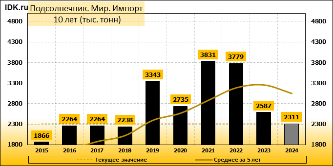 Импорт: составит 2311 тысяч тонн. Значение по прошествии месяца упало на -4.15 процента.