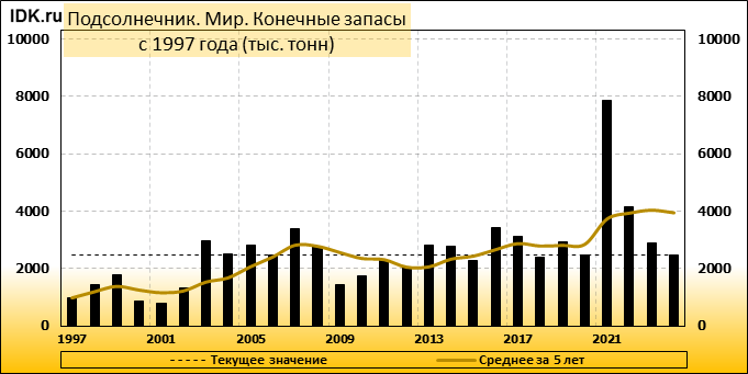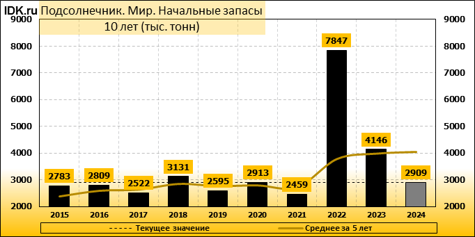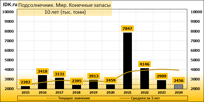Конечные запасы: составят 2456 тысяч тонн. Оценка с последнего отчета снизилась на -5.36 процента.