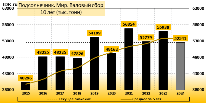 Валовый сбор: оценка пересмотрена в сторону понижения до 52541 тысячи тонн. Показатель упал на -4.15 процента.