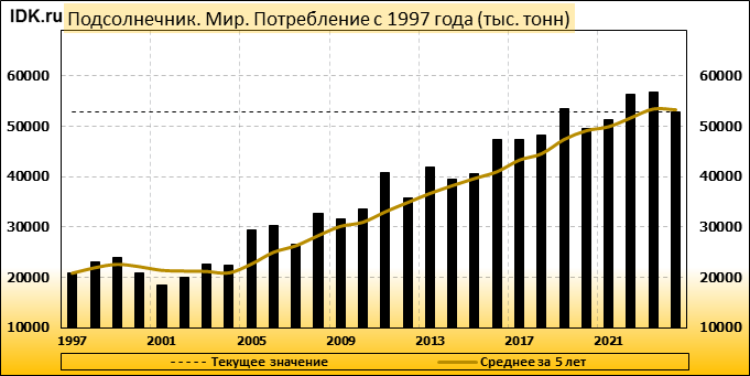 Потребление: показатель пересмотрен в сторону понижения до 52802 тысяч тонн. Значение упало на -3.94 процента.