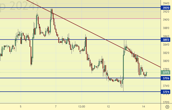 Продажа: нет. Кто в позиции от 397.0, перенесите стоп на 387.0. Цель: 330.0.