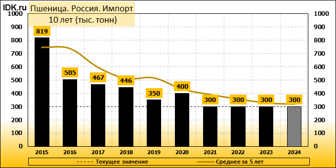 Импорт: составит 300 тысяч тонн. Значение по прошествии месяца не изменилось.