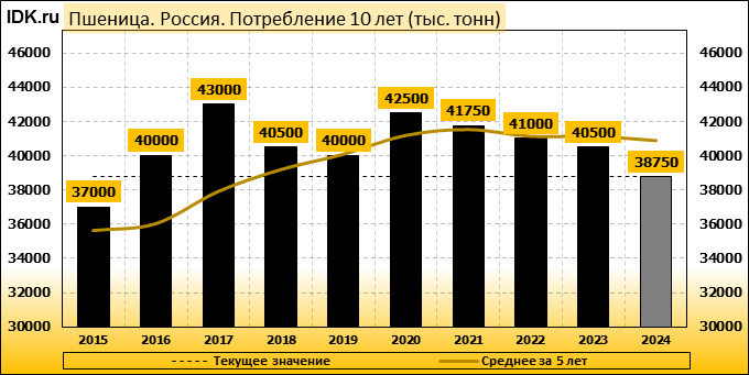 Потребление: показатель не изменился и составляет 38750 тысяч тонн.