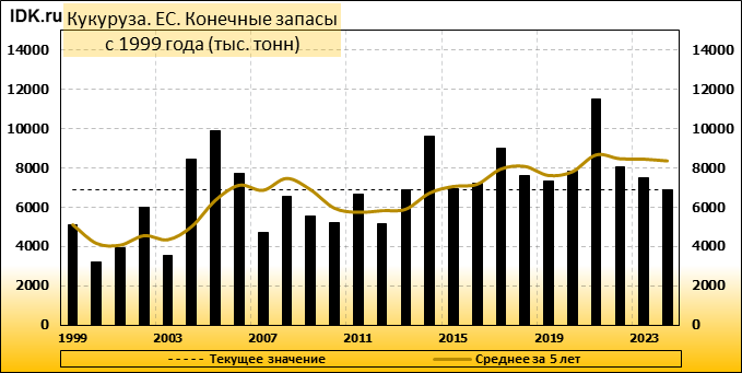 Конечные запасы: составят 6883 тысячи тонн. Оценка с последнего отчета снизилась на -8.1 процента.