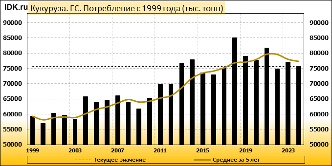 Потребление: показатель пересмотрен в сторону понижения до 75600 тысяч тонн. Значение упало на -3.2 процента.
