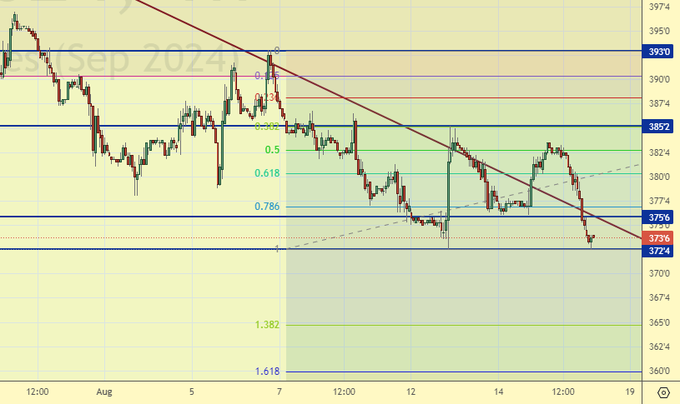 Продажа: нет. Кто в позиции от 397.0, перенесите стоп на 387.0. Цель: 330.0.