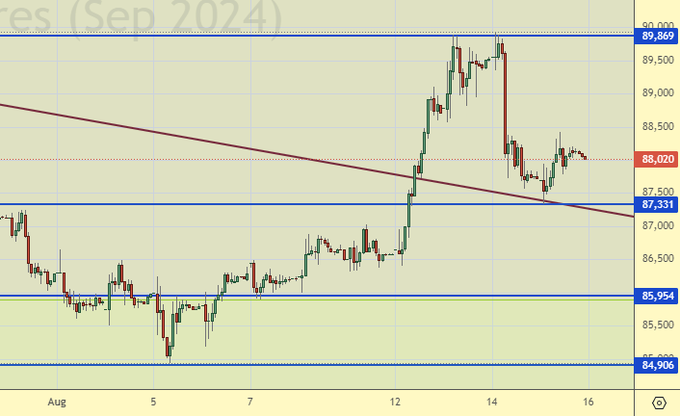 Покупка: нет. Кто в позиции от 85795 и 87717 держите стоп на 87300. Цель: 100000.