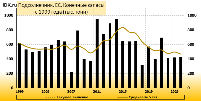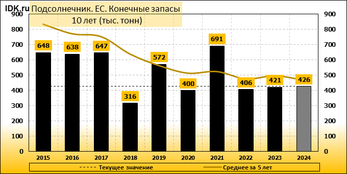 Конечные запасы: составят 426 тысяч тонн. Оценка с последнего отчета снизилась на -17.44 процента.
