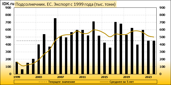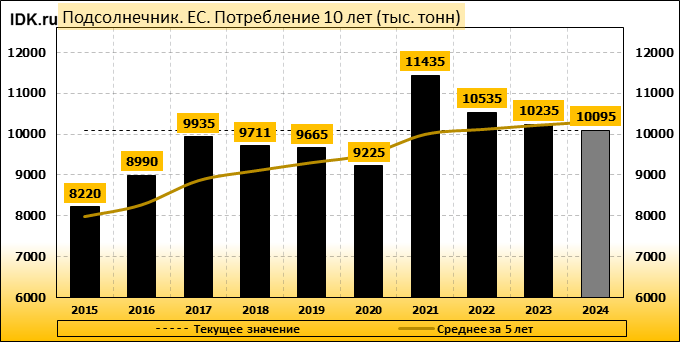 По последним оценкам Еврокомиссии, в этом году в ЕС будет собрано около 10,9 млн тонн семян подсолнечника. Это будет чуть меньше 18% от предыдущего года, но также достигнет нового рекордного максимума. Румыния собирается укрепить свои позиции крупнейшего производителя ЕС.