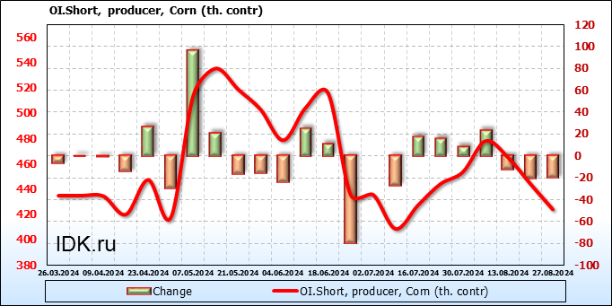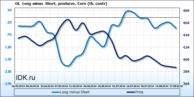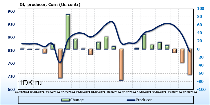 Открытый интерес производителей упал на 64 тыс. контрактов. Объем контрактов, направленных на хеджирование, составляет 805 067 штук. Деньги производителей в течение прошлой недели уходили с рынка не видя привлекательности в текущей ситуации.