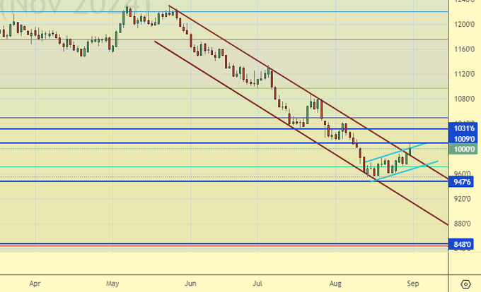 Сценарий роста: рассматриваем октябрьский фьючерс, дата экспирации 26 сентября. По технике можно купить. Зима близко!