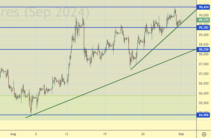 Покупка: нет. Кто в позиции от 90101, перенесите стоп на 89300. Цель: 100000.
