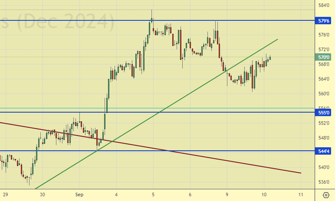 Пшеница (декабрьский контракт, CME Group, исполнение 13.12.2024)