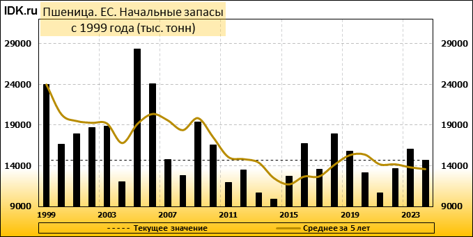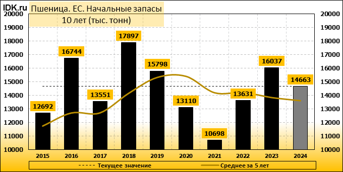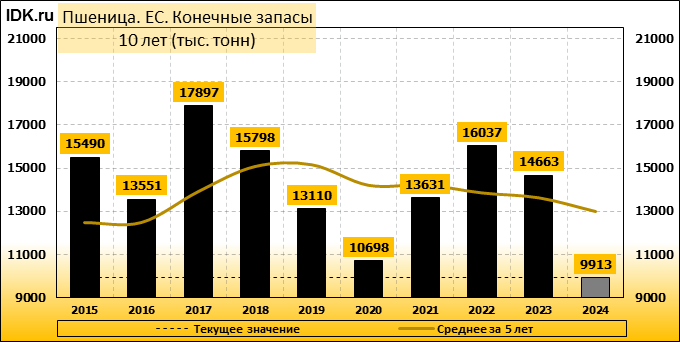 Конечные запасы: составят 9913 тысяч тонн. Оценка с последнего отчета снизилась на -2.36 процента.