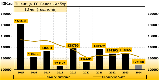 Валовый сбор: оценка пересмотрена в сторону понижения до 124000 тысяч тонн. Показатель упал на -3.13 процента.