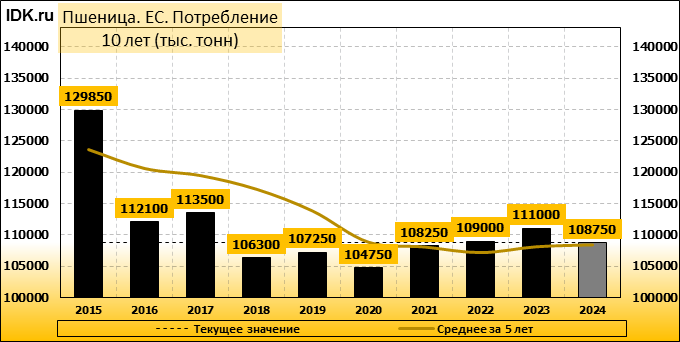Потребление: показатель пересмотрен в сторону понижения до 108750 тысяч тонн. Значение упало на -1.36 процента.