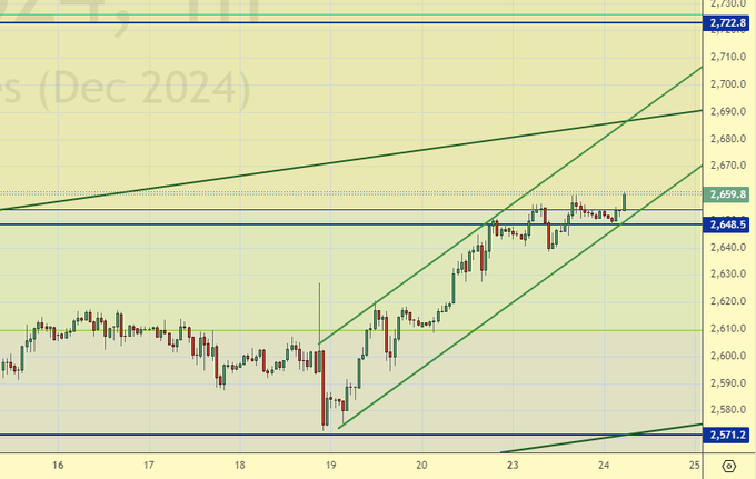 Покупка: нет. Кто в позиции от 2618, перенесите стоп на 2617. Цель: 2838.
