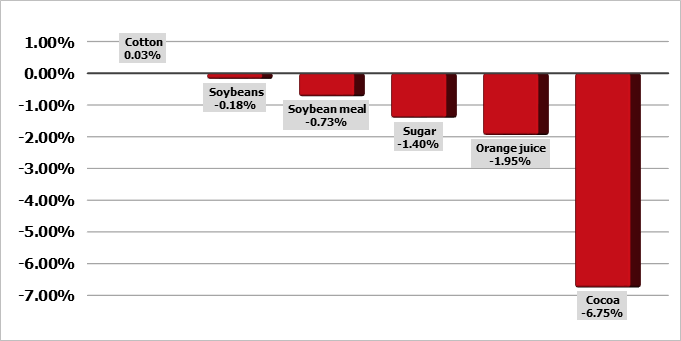 Соевые бобы в понедельник демонстрировали слегка смешанную торговлю. Соевая мука подорожала на $2/тонна за день. Фьючерсы на соевое масло торговались на 80 пунктов выше. В понедельник USDA сообщило о продаже 116 000 тонн соевых бобов на экспорт в Китай в 2024/25 году. Квартальный отчет о запасах зерна от NASS показал, что запасы сои в США на 1 сентября составили 342 млн бушелей. Это на 9 млн бушелей меньше, чем по данным опроса аналитиков Reuters, и всего на 2 млн бушелей выше сентябрьского прогноза WASDE. Тем не менее, это на 78 млн бушелей выше, чем за тот же период прошлого года, что было ожидаемо. Данные экспортных инспекций от USDA показали, что за неделю, завершившуюся 26 сентября, в США было отгружено 675 749 млн тонн (24,8 млн бушелей) соевых бобов. Это на 0,3% меньше, чем на той же неделе прошлого года, и на 33,4% больше, чем на предыдущей неделе. Таким образом, общий объем поставок составил 1,922 млн тонн (70,62 млн бушелей), что на 3,4% меньше, чем в прошлом году.