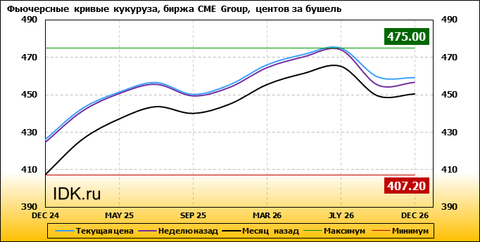 Фьючерсы на кукурузу завершили пятничную сессию с понижением от 2 до 4 ¾ цента. Дополнительное давление оказали ослабление рынка пшеницы и укрепление индекса доллара США. Декабрьские контракты выросли в понедельник на 6 ¾ цента, чему способствовало начало недели.