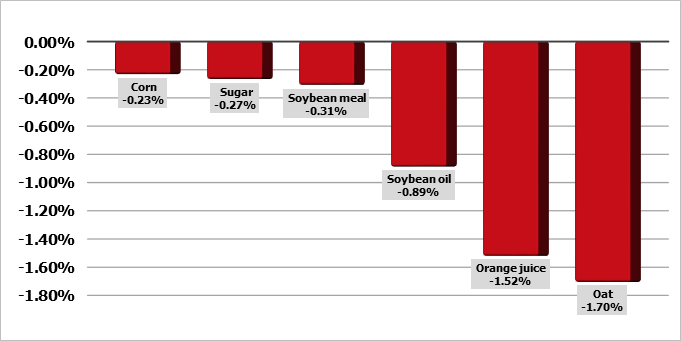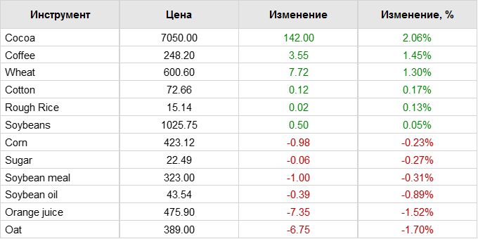 Чикагские фьючерсы SRW снижались во вторник на незначительную величину до одного цента за день. Контракты KC HRW снижались на 1-1,5 цента за сессию. Яровая пшеница MPLS демонстрировала смешанную торговлю, большинство контрактов не изменились ни на пенни. Экспортные поставки пшеницы в августе составили 2,438 млн тонн (89,58 млн бушелей), что на 67,65% больше, чем год назад, и на 24,46% больше, чем в июле. Таким образом, объем экспорта в первом квартале достиг 215 млн бушелей, что является 3-летним максимумом. Данные о ходе сева показали, что 51% посевов озимой пшеницы в США засеяно, что на 1% отстает от средних темпов. Всходы были отмечены на уровне 25%, что соответствует норме. Япония выставила на тендер 115 050 млн тонн пшеницы из США, Канады и Австралии, из них 56 690 млн тонн из США.